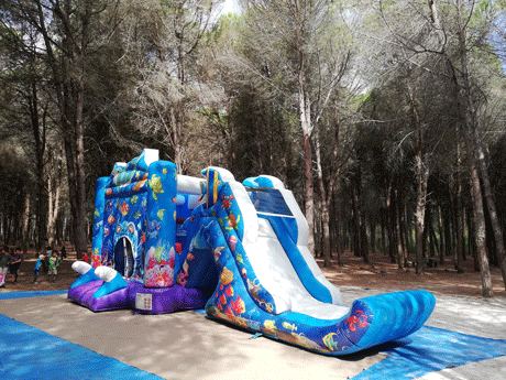 Zona de saltos, pinos e cesto para se divertirem!
