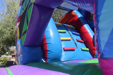 Grande área de saltos e um bom escorrega que faz a delicia das crianças!